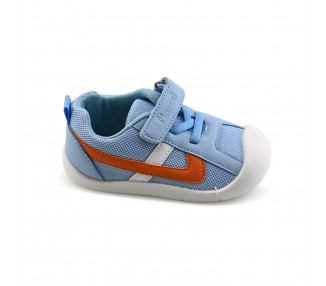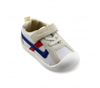 Zapatilla infantil para niños pequeños. Confeccionada en mesh y material sintético. Acceso y ajuste con cordones y abrojo. Base continuada en puntera para mayor refuerzo y cuidado.