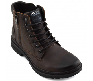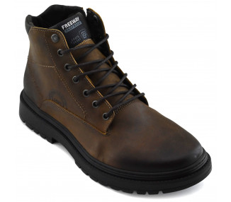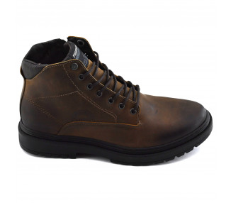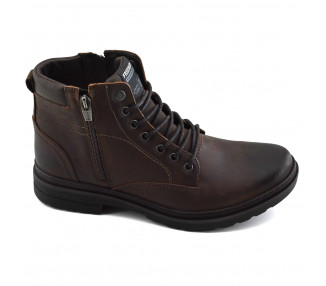 Borcego de hombre de cuero. Acceso con sistema de cordones y con cierre lateral. Base sintética.