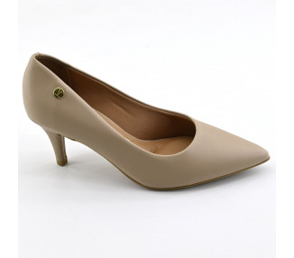 Zapato clásico confeccionado en materiales sintéticos. Cerrado de terminación en punta con taco fino de mediana altura (taco Luis XV).
