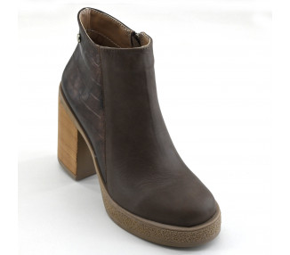 Botineta de cuero. Caña baja y acceso por cierre lateral. Base plataforma con cámara de aire en área de talón.