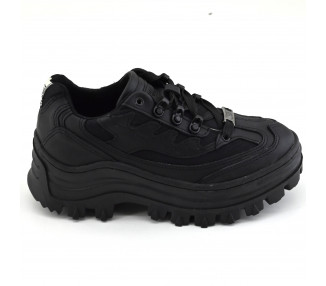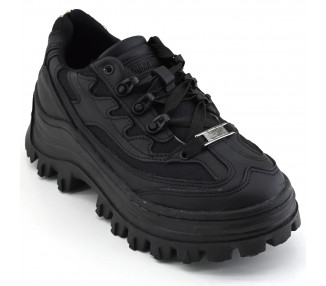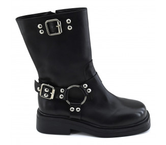 Bota borcego de cuero y forrería sintética. Caña de altura media con piezas elastizadas en laterales. Suela plataforma sintética con taco de 3.5 cm de altura.