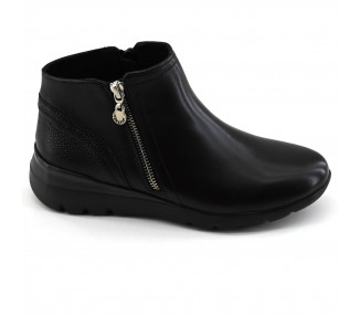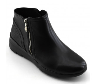 Botita urbana de inspiración retro, fabricada en cuero graneado. Forrería en material textil y suela de goma. Doble plantilla de latex que brinda confort duradero. Peso: 728 gr (talle 36). Altura base: 2,5 cm y 3 cm en talón. Super liviana.