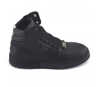 Botineta urbana de cuero liso combinado con metalizado. Caña corta y acceso con cierres laterales. Suela plataforma sintética ultra liviana.