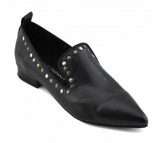 Zapato cerrado de cuero estilo mocasín. Suela sintética con taco bajo forrado.