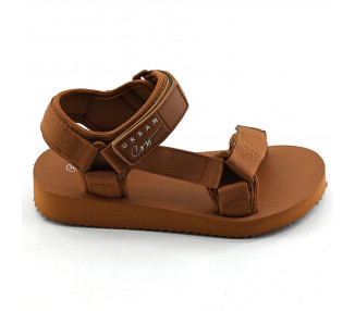Sandalia de veraneo con suela de goma. Acceso y ajuste mediante fajas con velcro. Motivo estampado.