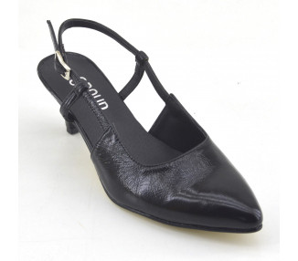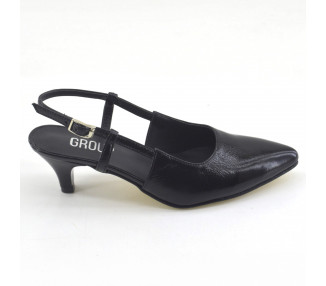 Zapato de cuero con tiras cruzadas y hebillas doradas. Diseño elegante con base firme. Confeccionado en cuero vacuno base inyectada, forrada en el mismo material, este modelo combina estilo y calidad en cada detalle. Su punta estiliza el pie, mientras que las tiras cruzadas con hebillas metálicas aportan sujeción y un aire sofisticado. El taco ancho asegura una pisada cómoda y estable. Horma...