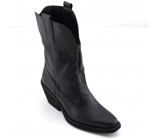 Sandalia de cuero mate con talonera y pulsera con hebilla. Fondo en suela y taco chupete forrado.