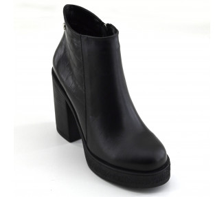 Botineta confeccionada en cuero vacuno. Con aplique mariposa en lateral externo y cierre interno. Forrado en cuero. Taco de 5,5 cm de altura y suelin antideslizante. Se sugiere llevar tu talle habitual.