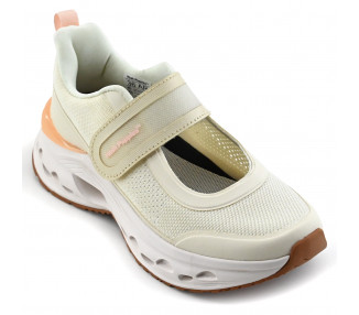 Guillermina urbana de mesh y sintético. Acceso y ajuste con faja y abrojo. Suela plataforma liviana.