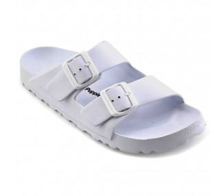 La sandalia Hush Puppies Sandy Beach color blanco presenta suela y capellada construidas con materiales súper livianos que casi no pesan, permitiéndote moverte con facilidad durante todo el día y absorbiendo el impacto de cada paso para un confort excepcional, esta es nuestra tecnología Zero G. Confeccionada en EVA, ofrece un diseño ligero y funcional con doble hebilla que asegura un ajuste...