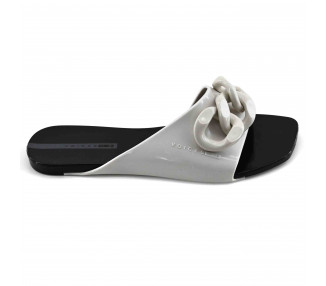 Sandalia con aplique de cadena en la parte superior. Capellada de plástico. Plantilla de PVC microexpandido.