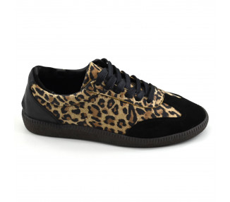 Sandalia de plataforma con tiras de cuero estampadas. Plantilla forrada y suela plataforma uniforme de goma.