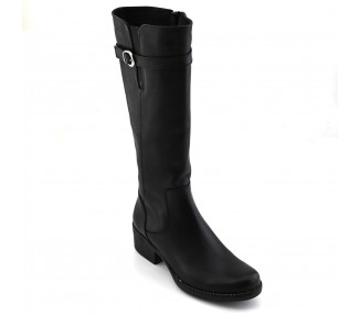 Botineta de cuero. Caña baja y acceso por cierre lateral. Base plataforma con cámara de aire en área de talón.