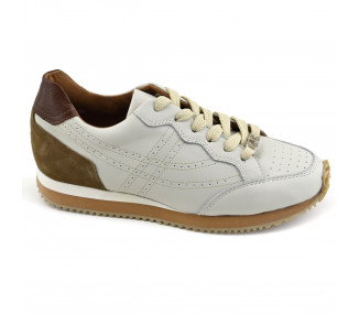Zapatilla urbana de cuero combinado con gamuza. Mediasuela en eva con base sintética.