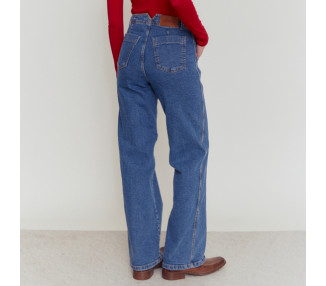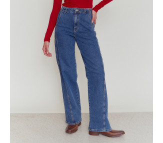 Jean de tiro alto con lavado mid blue, con un llamativo recorte lateral que se cruza hacia el delantero, añadiendo un toque único y moderno. Con elastano para mayor comodidad y flexibilidad, su fit straight ofrece un ajuste recto y favorecedor. El largo full length le da un acabado impecable y estiloso. Composición: 99% algodón y 1% elastano.