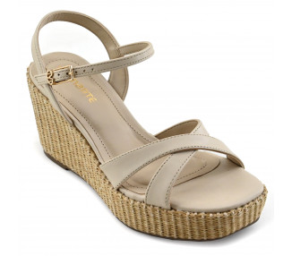 Sandalia de una faja y pulsera con hebilla. Plataforma forrada con taco alto. Suela sintética con dibujo.
