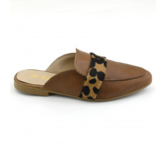 Pancha de cuero graneado. Diseño orgánico calado y refuerzos en costura. Fondo sintético lightway.