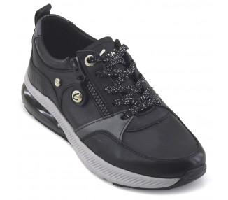 Borcego informal con puño acolchado de microfibra. Caña corta y acceso con cordones. Suela plataforma sintética. Altura: 3.5 cm adelante y 5.5 cm en área de talón. Horma normal.