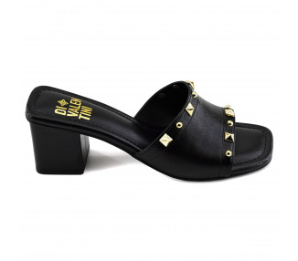 Zueco confeccionado en madera resistente, su suela antideslizante garantiza seguridad en cada paso. Los detalles de clavos metálicos realzan su estilo sofisticado, aportando un toque moderno y exclusivo. Ideal para quienes buscan confort sin perder distinción.