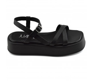 Sandalia de cuero sintético con plataforma. Minimalismo con altura. Esta sandalia está confeccionada en cuero sintético, con base inyectada liviana y plataforma cuña que estiliza sin resignar comodidad. Su diseño de capellada ancha cubre el empeine para un calce firme y cómodo.