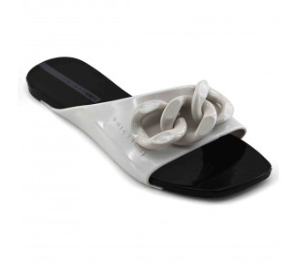 Sandalia con aplique de cadena en la parte superior. Capellada de plástico. Plantilla de PVC microexpandido.