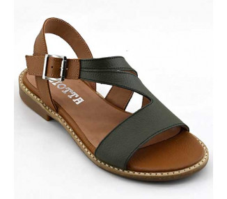 Sandalia Metz, de mujer, confeccionada en cuero y textil fantasía con strass, con diseño moderno y cámara de aire visible, pensada para brindar estilo, confort y un toque de brillo.