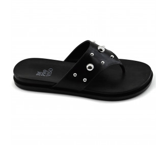 Sandalia de cuero sintético con plataforma. Minimalismo con altura. Esta sandalia está confeccionada en cuero sintético, con base inyectada liviana y plataforma cuña que estiliza sin resignar comodidad. Su diseño de capellada ancha cubre el empeine para un calce firme y cómodo.