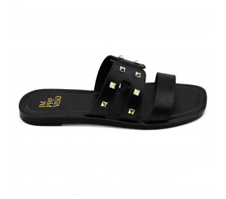 Sandalia zueco con tachas. Confeccionada en materiales sintéticos.