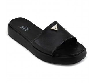Zueco de una faja confeccionado en materiales sintéticos. Suela plataforma baja.