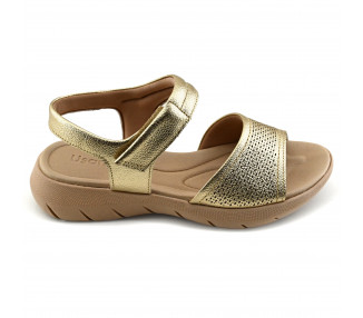 Sandalia Hush Puppies Rino cuenta con un fondo de EVA ultraliviano. Confeccionada en cuero metalizado con doble velcro e incorpora una pulsera con aplique.
