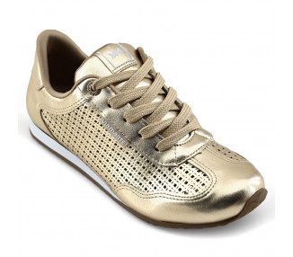 Sandalia Hush Puppies Rino cuenta con un fondo de EVA ultraliviano. Confeccionada en cuero metalizado con doble velcro e incorpora una pulsera con aplique.