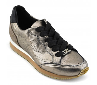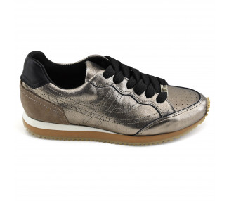 Zapatilla urbana estilo pancha para mujer. En cuero metalizado y acceso elastizado con cierre lateral. Fondo con cámara de aire en talón para una pisada liviana y cómoda.