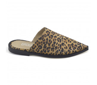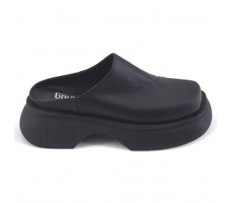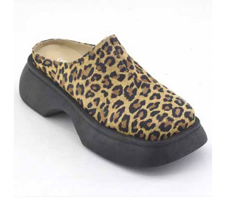 Sandalia de plataforma con tiras de cuero estampadas. Plantilla forrada y suela plataforma uniforme de goma.