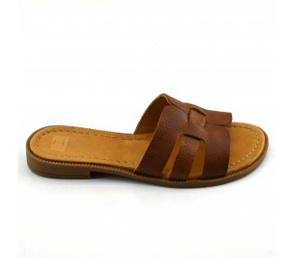 Sandalia de cuero con base de goma. Acceso con fajas elastizadas sobre empeine.