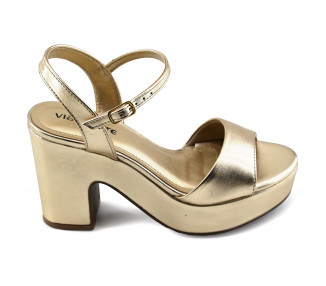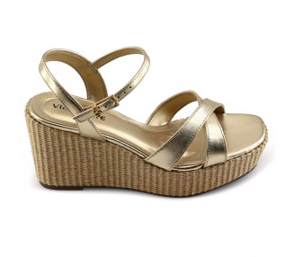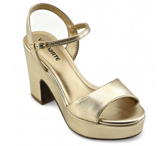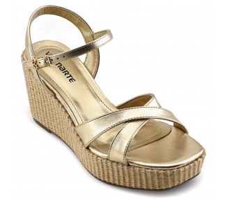 Sandalia Metz, de mujer, confeccionada en cuero y textil fantasía con strass, con diseño moderno y cámara de aire visible, pensada para brindar estilo, confort y un toque de brillo.