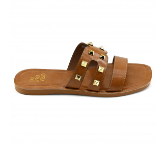 Sandalia zueco con tachas. Confeccionada en materiales sintéticos.