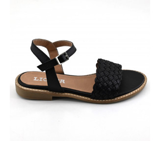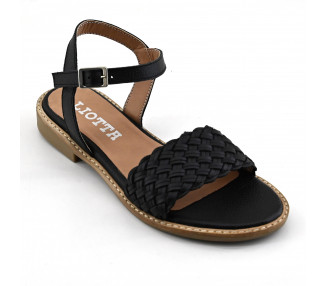 Sandalia de cuero con plataforma alta estilo taco chino. Plataforma con diseño tejido.