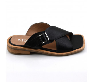 Bota de estilo biker realizada en cuero liso. Acceso libre por caña amplia con detalle de cintos con hebilla y estribo. Suela con taco foliado y base sintética.