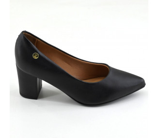 Zapato clásico de talón descubierto. Confeccionado en materiales sintéticos. Puntera y laterales cerrados con talón descubierto. Acceso y ajuste mediante tira con elástico detrás del talón. Taco cono forrado y base sintética.