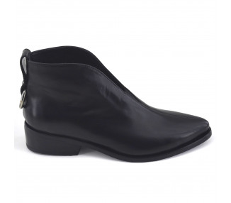 Zueco mules en cuero. Fondo en suela sintética con taco chato.