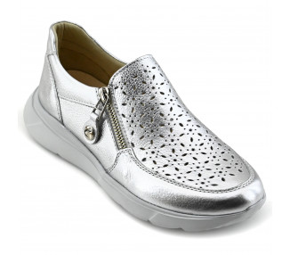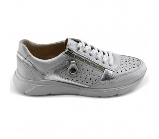 Zapatilla urbana de cuero con diseño microperforado. Detalles metalizados y sistema de cordones. Fondo en suela sintética en goma-