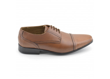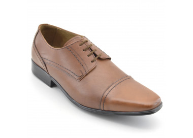Zapato de vestir acordonado confeccionado en cuero liso. Detalle de puntera y refuerzo en talón. Suela con taco folia. Capellada: cuero vacuno Forro: vacuno Plantilla: mat. reconst. Fondo: suela Ind. Argentina