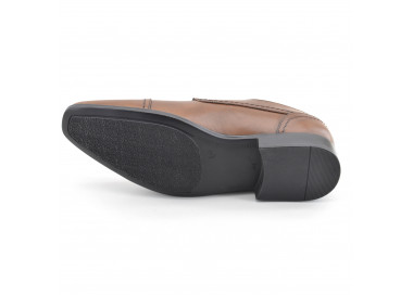 Zapato de cuero vacuno con detalle de picado en lateral. Forrado en cuero vacuno.