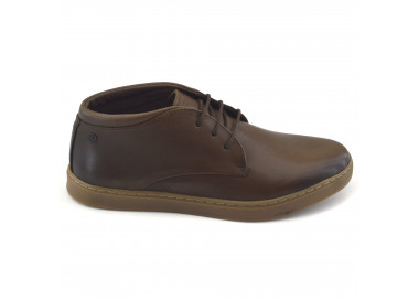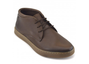 Zapato de cuero vacuno. Acceso con cordón fino redondo. Suela combinada en TR (goma termoplástica) con vira.