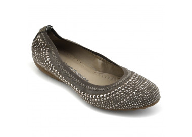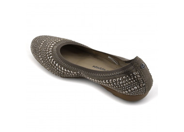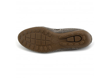 Ballerina con cinto con apliques y hebilla. Capellada de cuero estampado en animal print. Suela con taco ultra chato.