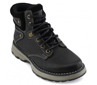 Confeccionado en capellada de sintético combinada con 100% textil poliéster y forrería 100% textil poliéster, ofreciendo un ajuste flexible y cómodo. Su diseño incorpora una caña acolchonada en tejido acanalado para mayor abrigo y sujeción. Presenta cordones de ajuste con ojales metálicos y una suela sintética con base robusta, garantizando estabilidad en cada pisada.