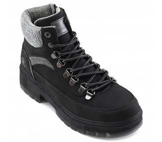 Borcego informal con puño. Caña baja y acceso con cordones alpinos. Suela plataforma sintética.
