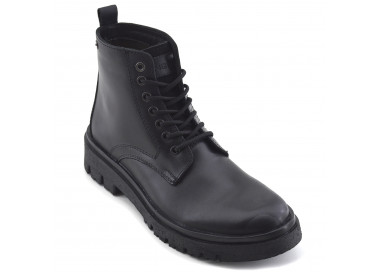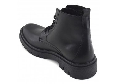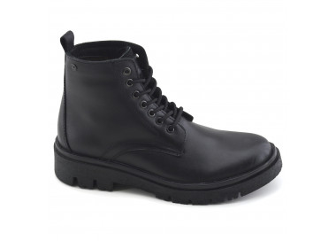 Borcego de hombre de cuero. Acceso con sistema de cordones y cierre lateral. Base sintética.