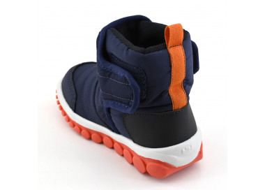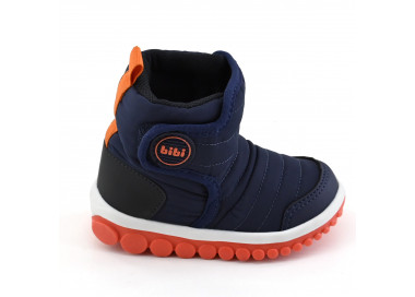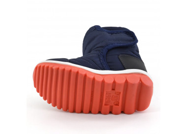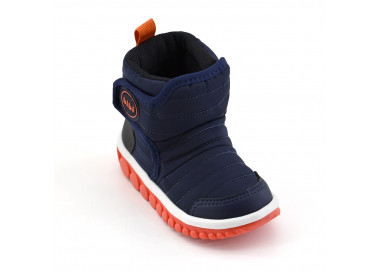 Bota de niña en textil y sintetico, caña baja. Detalle de velcro regulable y avio marcario. Base inyectada.