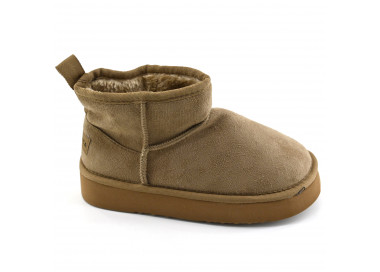 Bota de niña en textil y sintetico, caña baja. Detalle de velcro regulable y avio marcario. Base inyectada.